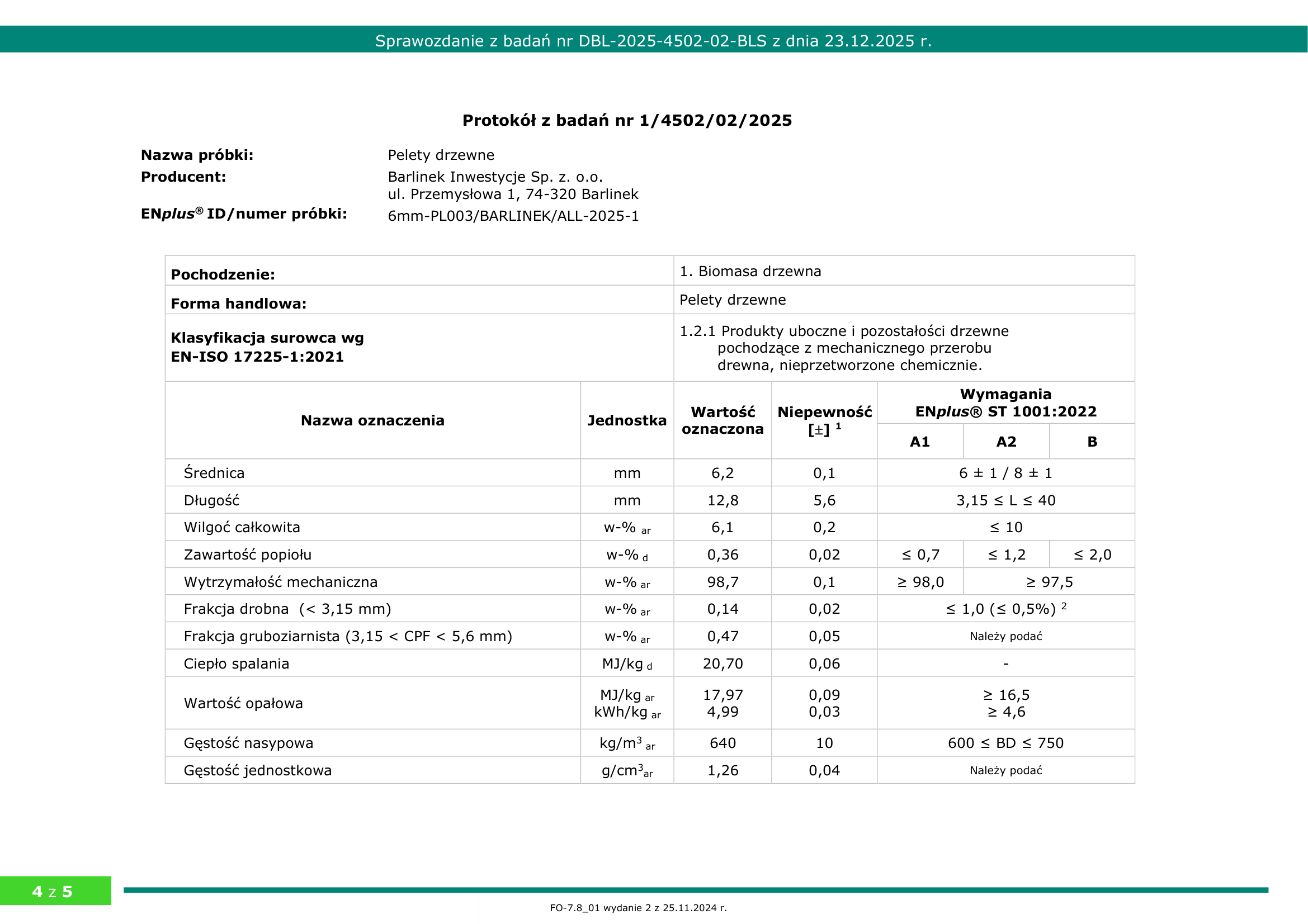 Pellet Barlinek to produkt charakteryzujący się wysoką jakością, potwierdzoną certyfikatami ENplus A1 oraz DinPlus. Dzięki wysokiej wartości opałowej i minimalnej zawartości popiołu gwarantuje efektywne i ekologiczne ogrzewanie.